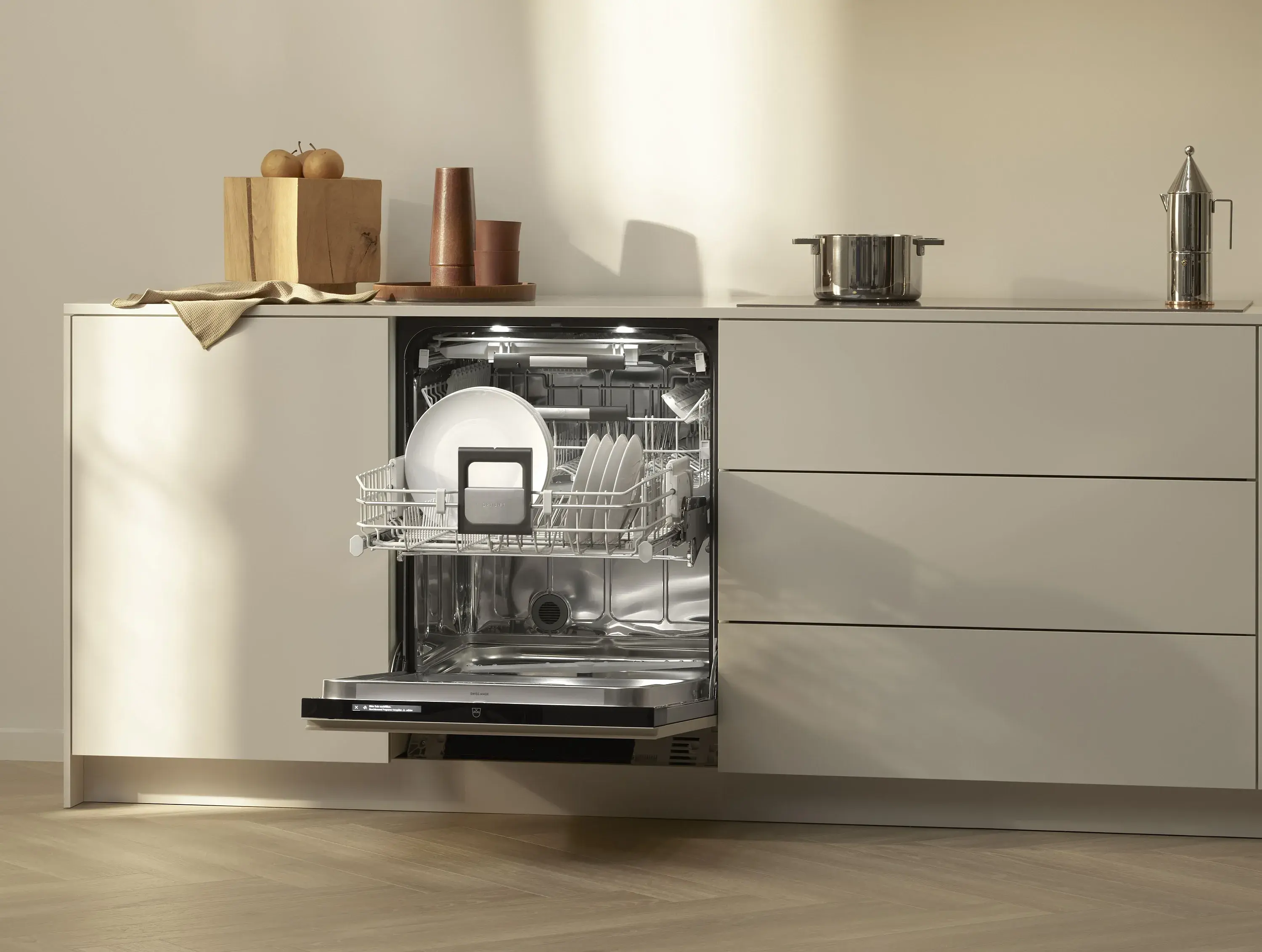 Seit mehr als 100 Jahren entwickelt V-ZUG Produkte, die für Schweizer Handwerkskunst stehen, stets bestrebt, brillantes Design noch besser zu machen. Der Adora Geschirrspüler verkörpert dieses Streben nach kontinuierlicher Verbesserung. So wurde er mit neuen, optimierten Funktionen ausgestattet, etwa den höchst flexiblen Geschirrkörben: