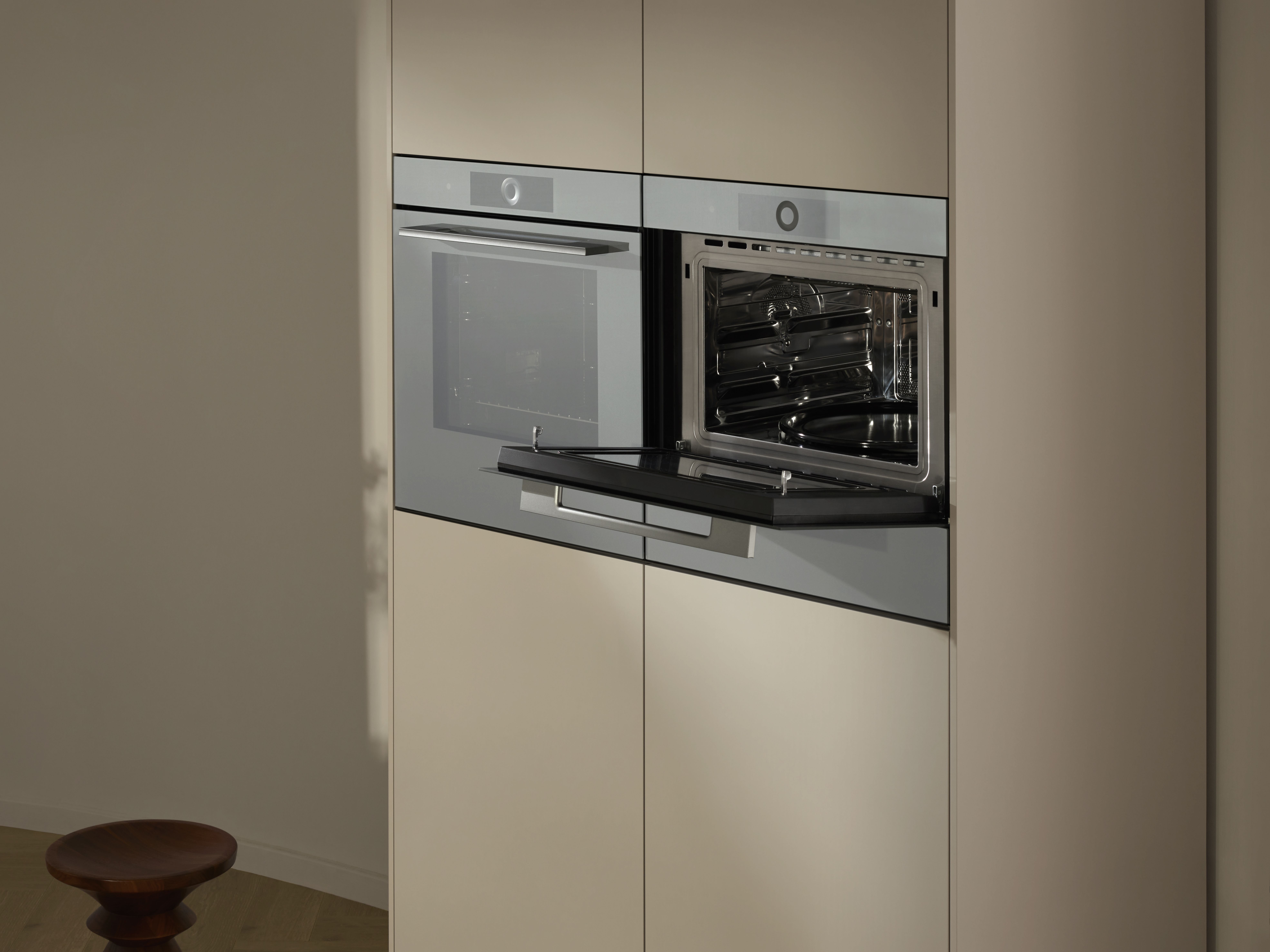 V-ZUG bietet auch bei Backöfen, Mikrowellen und Dampfgarern Schweizer Spitzenqualität in hochwertiger Ausführung. Alle Geräte sind vollintegrierbar und lassen sich glänzend miteinander in einem Hochschrank kombinieren. Besonders gut macht sich das in einer grifflos gestalteten Küche. Falls die Küchenplanung nur noch Platz für eine Ofenart zulässt, bietet V-ZUG auch Backöfen mit Dampf-Funktionen oder Combisteamer, in denen gleich mehrere Funktionen vereint sind.