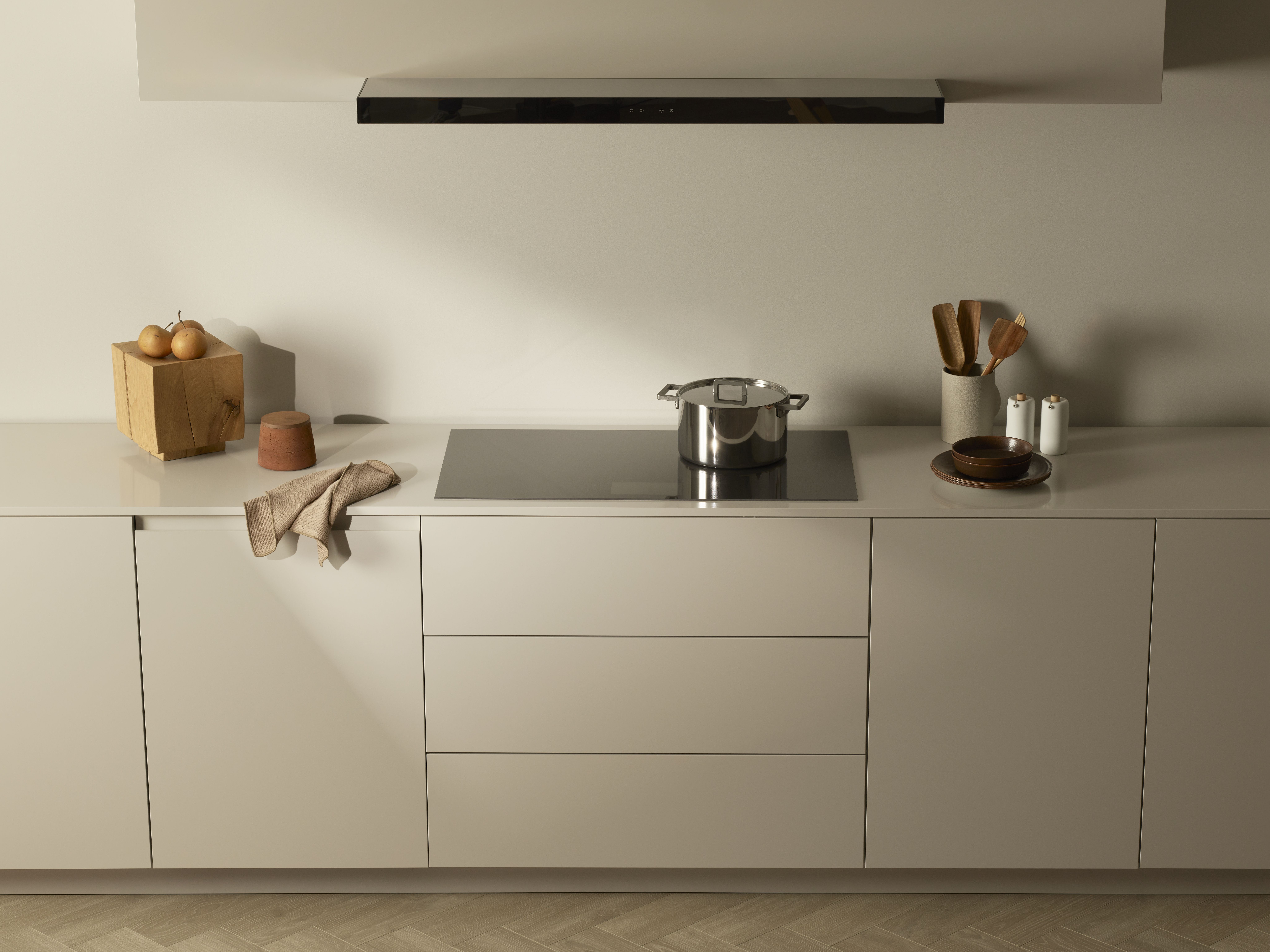 Zeitlose Eleganz und klare Linienführung sind für die Abzugshauben von V-ZUG charakteristisch. Schmale Frontdesigns und Premium-Materialien wie Glas und Edelstahl fügen sich nahtlos in die Küchenumgebung ein: