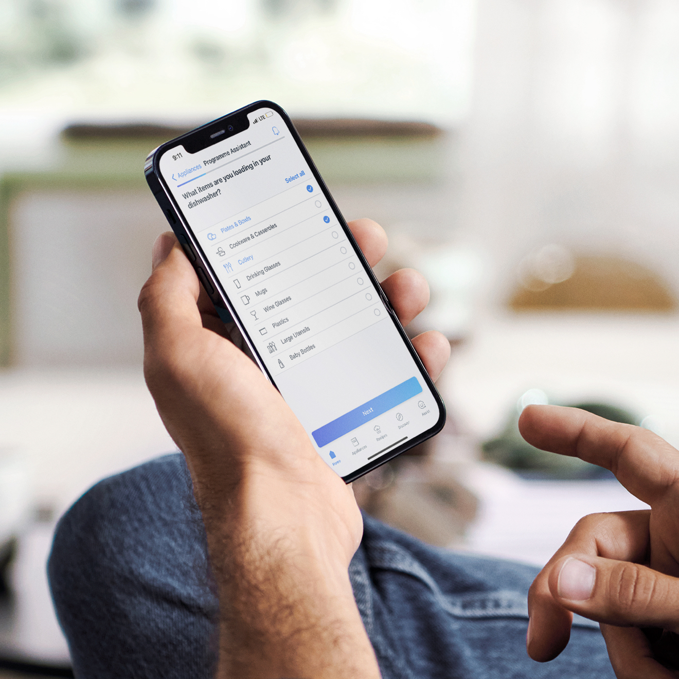varioSpeed Plus beschleunigt den bereits laufenden Spülvorgang, wenn es schneller gehen muss. Ganz einfach auf Knopfdruck am Gerät oder auch bequem unter­wegs über die Home Connect App.